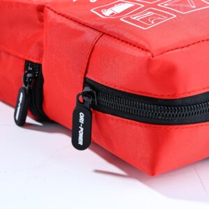 Ogni articolo è ben organizzato in una resistente borsa trapezoidale rossa, che ne facilita l’accesso sotto pressione.